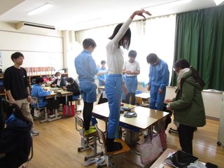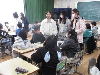 今日の4限目、台湾の中山高級中学と津高校の高校生に来てもらって、5・6年生と交流しました。