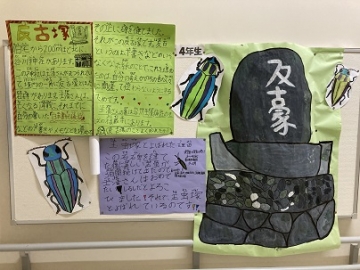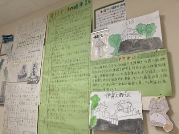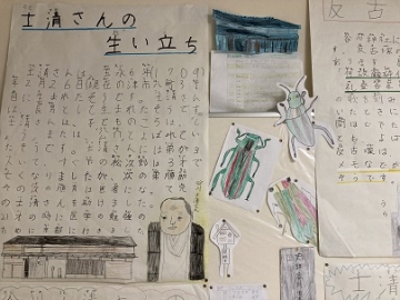 先週、谷川士清さんについて校外学習をした4年生が、「谷川士清新聞」としてまとめたものを校内に掲示してくれました。谷川士清さんの生い立ちから業績まで、実際見てきたもの、聴いてきたことがしっかりとまとめられていました。また先日、4年生全員が書いたお礼の手紙を谷川士清の会の方々にも手渡してきました。この掲示を谷川士清の会の皆様にもぜひ見ていただきたいと思います。