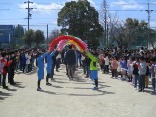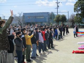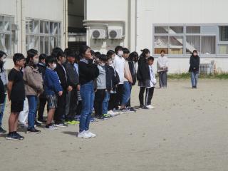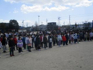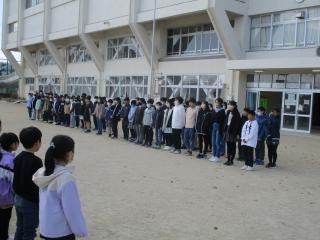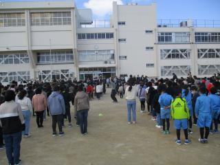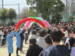 本日、卒業生と在校生と一同に集える最後となる「お別れ式」が校庭で執り行われました。在校生の「卒業生に送る言葉」「卒業生に送る歌」等、和やかに式をもつことができました。