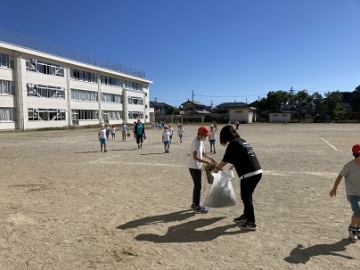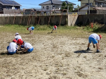 今週月曜日から今日までの1週間、美化委員会が考えてくれた「草抜きウィーク」を全校で実施しました。緊急事態宣言中に外遊びの制限をしたところ、運動場があっと言う間に雑草だらけになってしまったので、休み時間終了前の3分間だけ、運動場に生えている雑草を抜くという美化活動をしました。たった1週間ですが、全校みんなが頑張ってくれたおかげで、運動場がとてもキレイになりました。