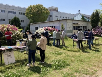 この日は、津高等学校で「青空図書館」が開設されていたので、司書の山下さんと見学させていただきました。