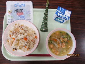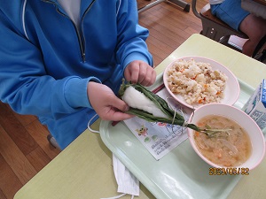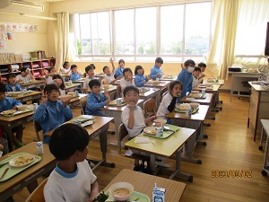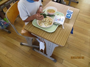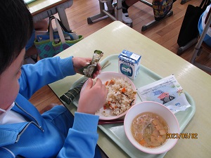 教室に行くと、みんなおいしそうに給食を食べていました。