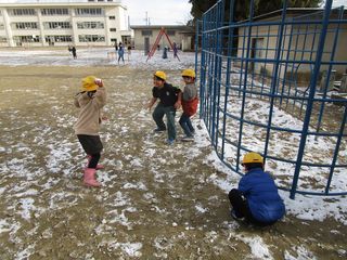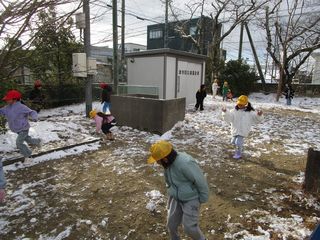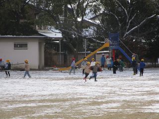学校に着いてからは、運動場に残った雪で雪合戦をしたり雪だるまをつくったりする様子も見られました。