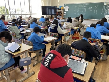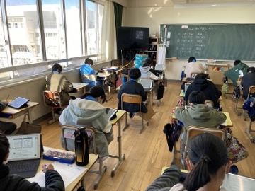 第2回「みえスタディ・チェック」は、一人一台タブレット端末を使って解答しました。特に操作で困ることもなく、5年生の子どもたちは普段使い慣れたタブレットを通して問題を解いていました。今後は、このような機会も増えてくることが予想されます。