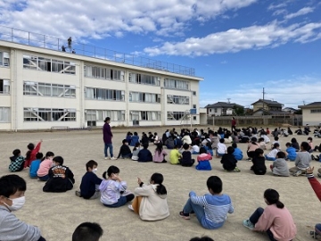 今日の5限目、映画「浅田家」のモデルとなった浅田政志さんが来校し、全児童が運動場に集まっての写真撮影をしていただきました。コロナ禍で楽しい行事がなくなった子どもたちが少しでも笑顔になれるように、各校で花火の人文字で表現した「花火プロジェクト」の写真は、後日パネルにして学校に寄付される予定です。