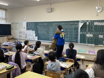 撮影後は、6年生の各クラスで子どもたちとふれ合っていただきました。6年生にとっても良い思い出になったと思います。