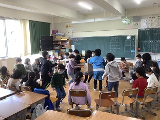 明日の終業式を前に、今週は各学級で「お楽しみ会」をしています。クラスみんなで教室を飾りづけたり、みんなで楽しく遊ぶ内容を考えたりと、どのクラスも工夫して楽しそうに遊んでいる姿がたくさん見られました。