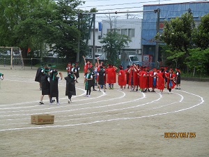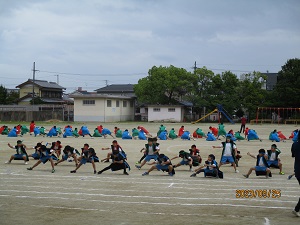 今日は曇り空で、少し雨が降る時間もありました。子どもたちは、運動会に向けて、練習に意欲的に取り組んでいます。