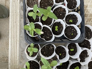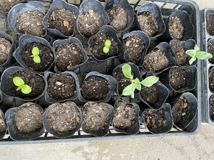連休明けに1・3年生が種まきをしたアサガオやヒマワリ、マリーゴールド、ホウセンカの芽が出てきています。2年生が育てているミニトマトも大きく育ってきています。
