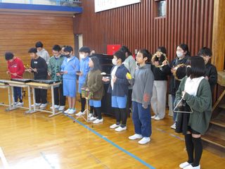 送る会で演奏する「ルパン三世のテーマ」や歌の練習、式の進行を確かめたりしていました。