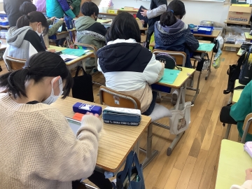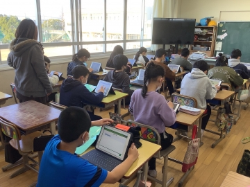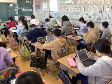 5年生では、2月から毎朝「今日の一問」という基礎的な問題に取り組んでいます。スタディチェックでも活用したCBTシステムという機能を用いて、算数・国語の基礎的な内容を確実に定着させることを目的としています。今朝も、各クラスの子どもたちは教師に言われなくても、各自がタブレットにパスワードを入力して「今日の一問」問題を解いていました。
