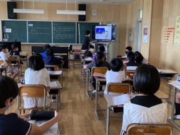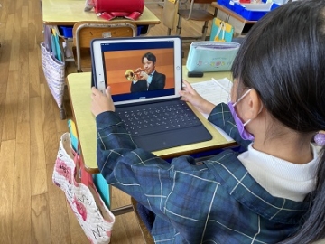音楽の授業で楽しいのは、クラスのみんなで一緒に歌ったり、合奏をしたりすることですが、コロナ禍では、その活動も制限されています。そんな中、少しでも楽しい音楽活動をと、リズムに合わせて手拍子、足拍子をしたり、タブレットを使って音楽鑑賞したりと工夫しています。午後からの自宅学習では、タブレットを活用した音楽の授業を始めているクラスもありました。
