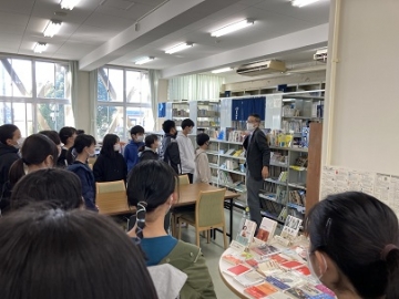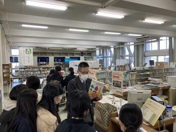 今日は、6年生各クラスが津高等学校の図書館を見学に行きました。津高校の図書館は、本年度、三重県の学校図書館としては初めて「Library of the Year(ライブラリー・オブ・ザ・イヤー)」の優秀賞を受賞しています。図書館司書の井戸本さんから話を聴きながら、初めて高校の図書館を見学した子どもたちは「どれも読みたくなる本ばかり!」「津高校出身の作家の本があるの?」「ずっとこの図書館にいたい!」と目を輝かせていました。