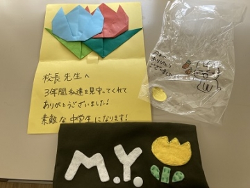卒業式を明後日に控えた卒業生から、お世話になった先生たちに手作りプレゼントが渡されました。それぞれの先生たちをイメージした刺繍入りのマスクケースとお手紙です。嬉しくて寂しくて涙が出ます。大切に使いますね。
