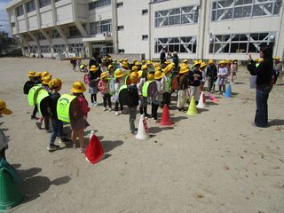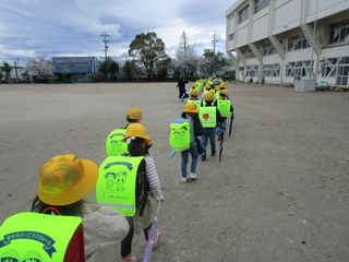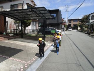 1年生が学校から家まで帰るのに、しばらくは教員が付き添って、下校グループごとに帰るようにしています。