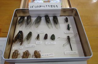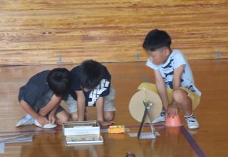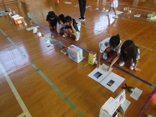 子どもたちが夏休みに取り組んだ工作や自由研究などを展示する「校内工作展」が今日と明日、体育館で行われています。