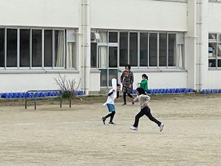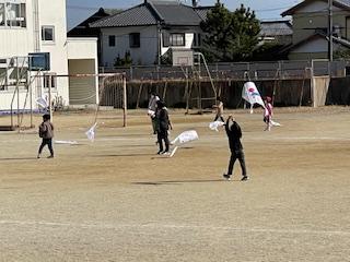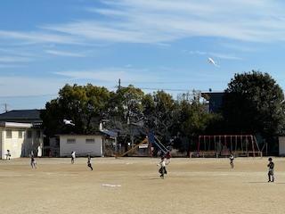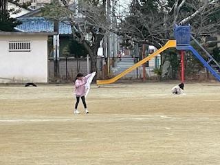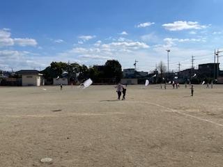 1年生が生活科の学習で「たこ」をつくり、たこあげをしました。