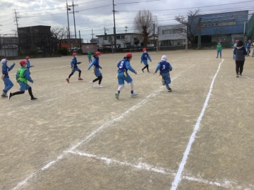 今5年生では体育の授業で「タグラグビー」をしています。ラグビーと言えば、タックルなどで危険なスポーツというイメージですが、タックルの代わりに両腰につけた帯を取りに行くなど安全なルールに変えて楽しくラグビーをできるのがこのゲームです。5年生は昨年から体育で取り組んでいるので、ルールも熟知していて男女関係なく楽しくゲームを楽しんでいました。
