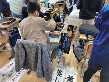 今週土日曜日に津リージョンプラザで予定していた「小中学校書写展」は中止になりましたが、子どもたちは新春の書き初め作品を頑張って仕上げています。期日は未定ですが、昨年度と同じように入選作の校内書写展は行いたいと思います。