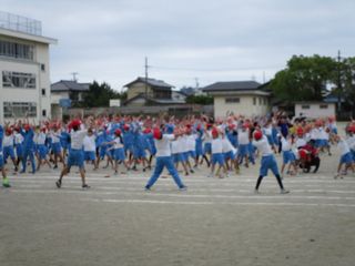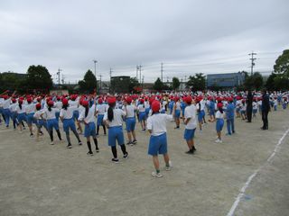 まず、初めに体育委員が前に出て、準備運動としてラジオ体操をしました。