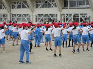 今日の1限目は、全校児童が運動会で踊る「ことすがソーレ2024」の全体練習でした。