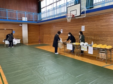 本日の午後、令和4年度入学説明会を体育館にて実施する予定でしたが、感染予防対策により入学説明はホームページからの動画配信とし、物品購入のみ体育館にて行いました。新1年生の保護者の皆様には、大変寒い中ご来校いただき、本当にありがとうございました。来年度の新1年生は、現在82名がご入学していただく予定です。ご入学を今から楽しみにしています。