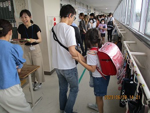 限目に授業参観、その後災害時等における児童引き渡しの訓練を行いました。