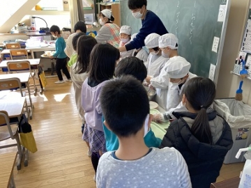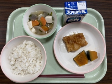 今日で今年最後の給食となりました。メニューは「けんちん汁」「とうじかぼちゃ」「いかのゆずふうみ」です。温かい給食をみんなで美味しくいただきました。来年こそは、クラスみんなで楽しくおしゃべりしながら給食を食べたいものです。
