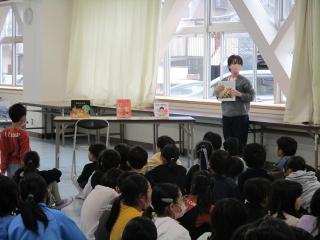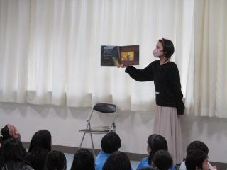 分休みに、図書ボランティアの方々による「季節のおはなし会」がありました。