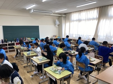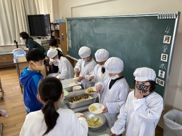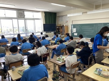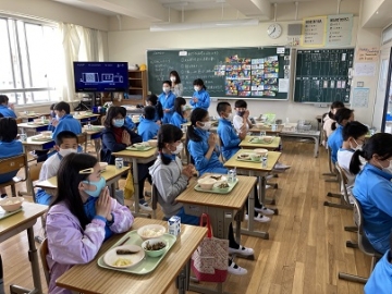 今日から給食がスタートしました。給食時にマスクを外すことから、昨年度に引き続き、配膳前の手指消毒、お代わりは食べる前に教員が行う、食事中は黙って食べる等を徹底します。給食初日でしたが、どのクラスもしっかりルールを守って配膳し、全員静かに食べていました。