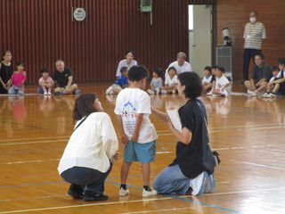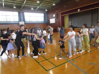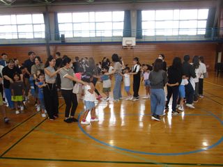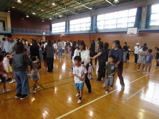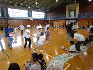 保護者の方も一緒に、最初にラジオ体操をした後、「ジャンケン列車」をしました。