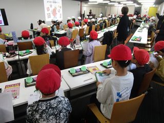 機械を使いながら毎日たくさんの製品をつくっている様子に子どもたちは驚いていました。