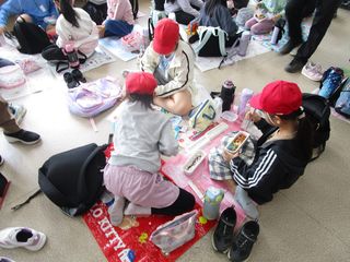 子どもたちは、友だちと楽しそうにお弁当やお菓子を食べて大満足な様子でした。