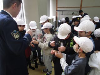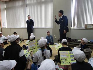 いろいろな警察の仕事について話を聞いた後、警察官が使っている制服や警棒、手錠なども見せていただいたり、110番電話がかかってくる110番センターの見学もさせてもらいました。
