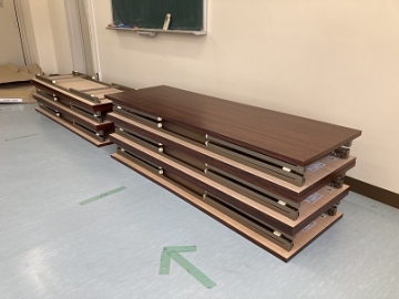 先日、新町地区自治会よりたくさんの長机を購入していただきました。本来であれば、毎年夏に開催される新町夏祭りなどの地域行事に使われる長机ですが、「学校でも使ってください」とのご厚意に甘えて、様々な活動に活用させていただいています。昨日も給食を2カ所に分けて食べる際に使わせていただきました。大変助かっています。