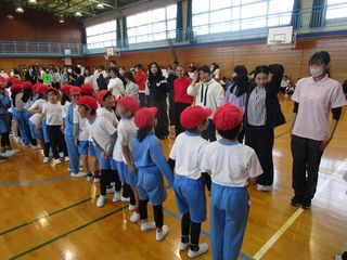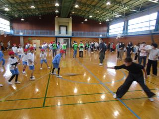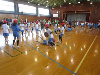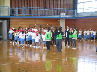 PTA学級委員さんからのルール説明を聞いた後、ケガをしないよう、みんなで準備体操をしました。