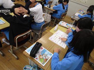 キーワードを言われたら、素早く机上の消しゴムを取ったり、教科書から探したり・・・みんな真剣です!