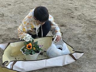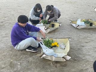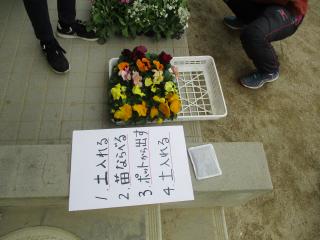 講師の方々の説明を聞きながら、花苗選び、土の準備等の作業を丁寧に進め、花苗を植え付けました。