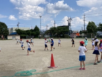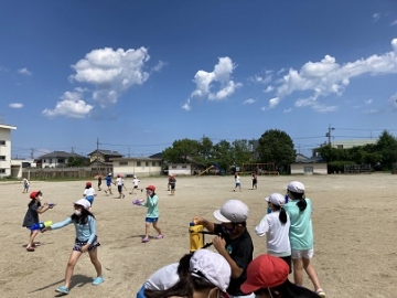 7月13日(火)の午後、4年生では、プール水泳が出来なかったかわりに「ジャブジャブ大作戦」と題して「水遊び」を運動場で行いました。昨日のような急な雷雨も心配しましたが、この日は最高の夏空の下で、運動中を駆け回って水遊びを満喫することができたようです。