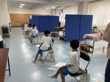 5月11日(火)に、1年生と4年生が心電図検査を行いました。この検査は「心臓の天気予報」とも言われ、不整脈や狭心症などの病気をいち早く発見するための大切な検査です。4年生は一度したことがあるので余裕でしたが、1年生の子どもたちにとっては「何をするんだろう?」「痛いのかな?」と検査をする前から興味津々の様子でした。