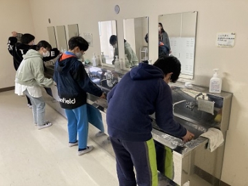 卒業間近の6年生が、今日の5・6時間目を使って「奉仕作業」をしてくれました。廊下や会議室、階段や備品庫、家庭科室など、普段あまり掃除しない所や汚れが目立つ箇所を重点的に清掃してくれました。どのグループも時間いっぱいまで一生懸命に作業をしてくれて感謝感激です。