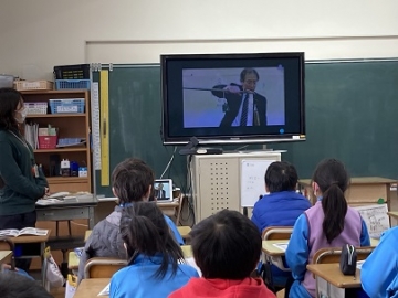 先週金曜日から「まん延防止等重点措置」が適用されたことを受けて、21日(金)もオンラインで三重県総合博物館と本校とをつないで、3年生を対象に「昔の道具」について詳しくお話いただきました。丸行燈や竿ばかりなど昔の道具を紹介していただき、実際に使うところも見せていただくと、子どもたちは「すごい!本当に使えるんだ!」と驚いていました。便利な時代に生まれた私たちですが、決して昔のくらしが不便だったと思うのではなく、人の知恵や工夫について改めて知ることができました。