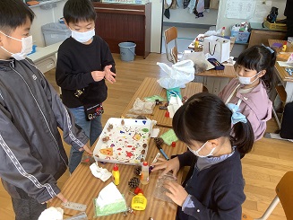 明日9日(木)は1年生が清泉幼稚園の園児たちを「秋のおもちゃ祭り」に招待します。遠足へ行ったときに集めたドングリや松ぼっくりを使って、けん玉やトントン相撲、コマ回しなどを工夫しながら頑張って作っています。「幼稚園の子たちが喜んでくれるといいなぁ」と今から1年生も楽しみにしています。