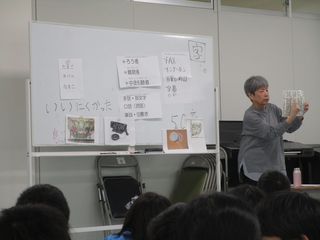 今日の1限目に、聴覚に障がいがある吉田さんと、手話通訳者の松田さんに来校していただき、4年生が耳が不自由な方のことについて話を聞かせていただきました。