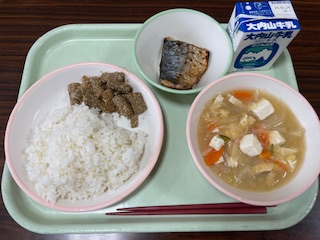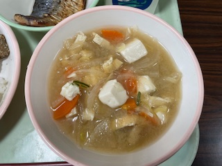 今日の給食は、5年生が考えた「冬の野菜白みそ汁」でした。