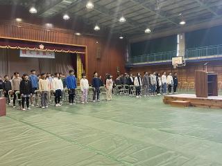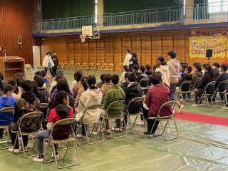 本番と同じ流れで、卒業証書授与式の予行を行いました。