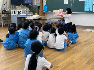 2・3年生は、朝の読み聞かせがありました。子どもたちは、絵本に夢中になって、聴き入っていました。