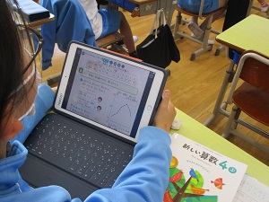 4年生の算数では、「折れ線グラフのとくちょう」をみんなで確認し合っていました。