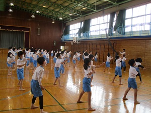 5・6年生は、運動会のダンスの練習で、「校長先生もう通しができるんだよ。見に来て!」と声をかけてもらい、体育館に行くと軽快なリズムの音楽に合わせて笑顔いっぱいで踊る姿がありました。