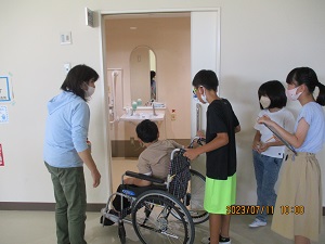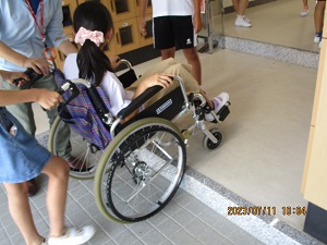 体験の後、子ども達の感想の中には、教室入り口のほんの数cmの段差、教室のドアの狭さなどが、車いすにとって大きな障害になることが分かりました。普段生活している中では、思いもしなかった視点です。他の誰かの目線に立って必要なことに気づくということは、非常に難しいことです。